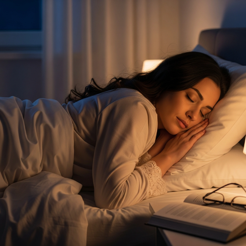 Ánh sáng dịu/ấm vào buổi tối: Vào buổi tối, khi cơ thể cần chuẩn bị cho quá trình nghỉ ngơi, ánh sáng dịu và ấm trở thành lựa chọn lý tưởng để hỗ trợ giấc ngủ. Loại ánh sáng này thường có nhiệt độ màu vàng hoặc cam nhạt, tạo cảm giác gần gũi và thư giãn, giúp não bộ dễ dàng bước vào trạng thái yên tĩnh sau một ngày dài hoạt động. Khác với ánh sáng xanh gây ức chế melatonin, ánh sáng ấm kích thích cơ thể tiết hormone này nhiều hơn, nhờ đó mang đến cảm giác buồn ngủ tự nhiên và thúc đẩy quá trình đi vào giấc ngủ sâu. Bên cạnh lợi ích sinh học, ánh sáng ấm còn tạo ra bầu không khí ấm cúng, mang lại cảm giác an toàn và thoải mái, giúp con người tận hưởng thời gian thư giãn trước khi ngủ.
